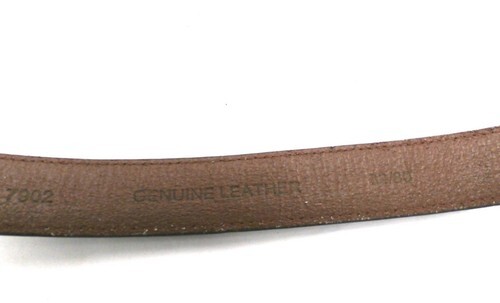 Men?s vintage brown leather belt with center lacing decoration and 1 oe? x 1 ? goldtone buckle. It is a marked size 32 and is 38? long x 1 1/8? wide and measures 31? to the first hole. There is some light wear, but it is in very good condition.