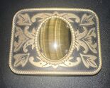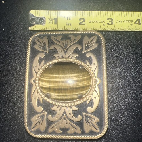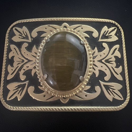- Vintage Belt Buckle Western Style Gold Ornate with Large Brown Oval Stone