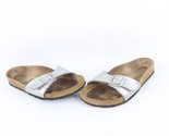 - Vintage Birkenstock Womens 6 Distressed Leather Slide On Buckle Sandals Silver