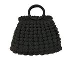 - Vintage Black Crocheted Popcorn Stitch Handbag Small Purse Mid Century Used