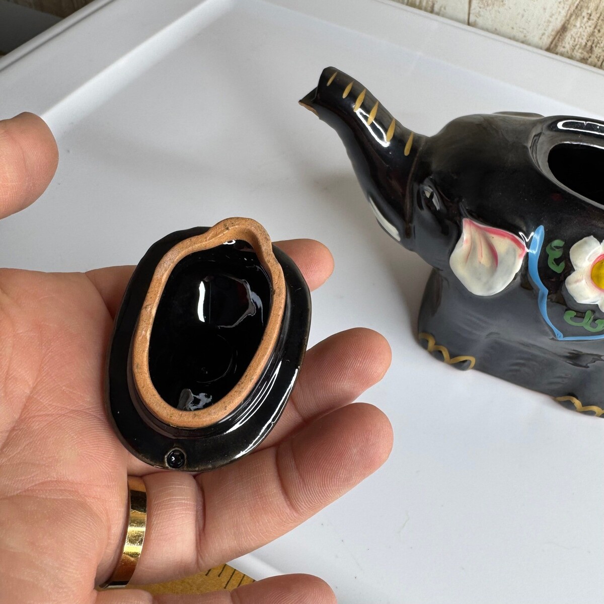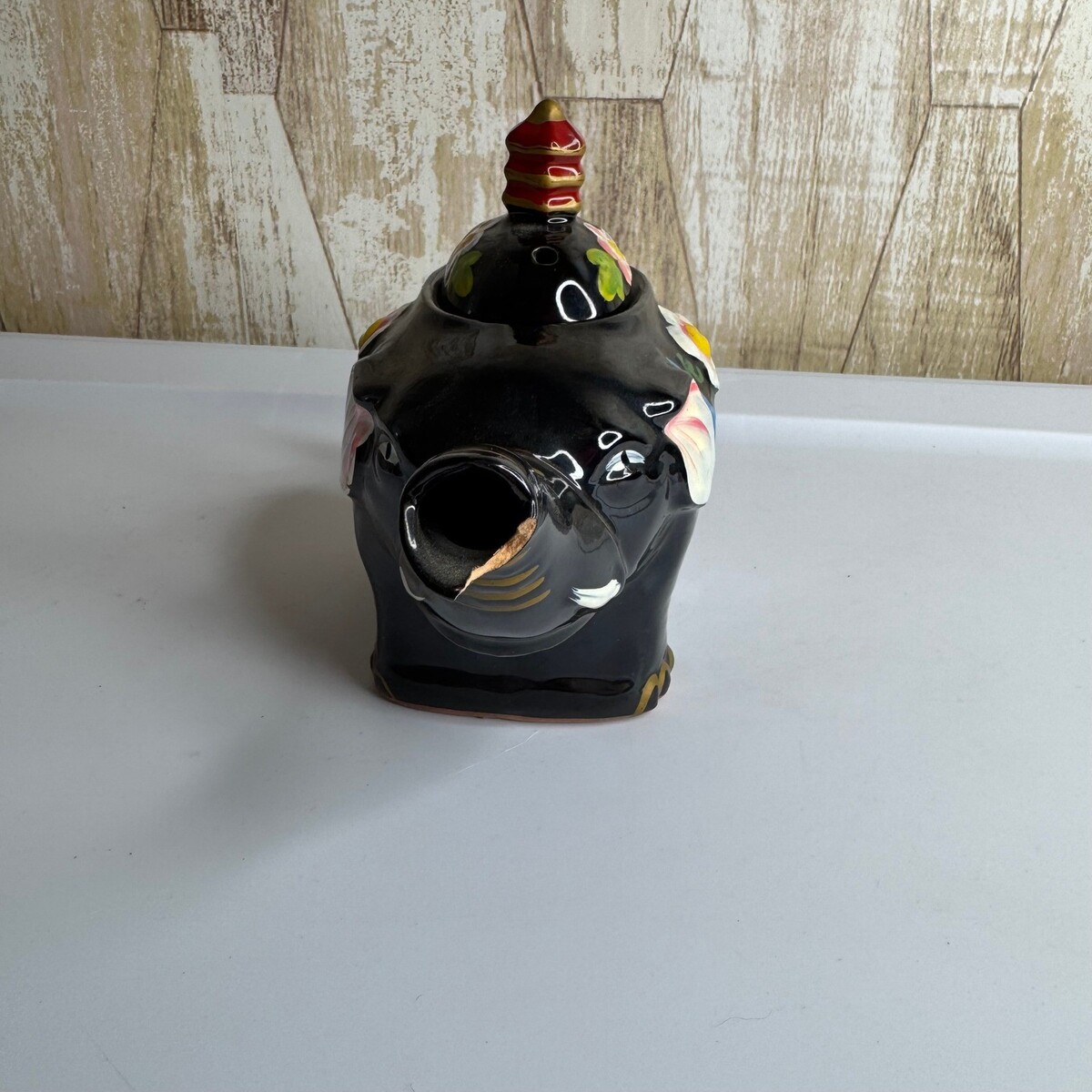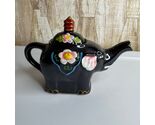 - Vintage Black Elephant Teapot Ceramic Floral Design with Lid Unique Collectible