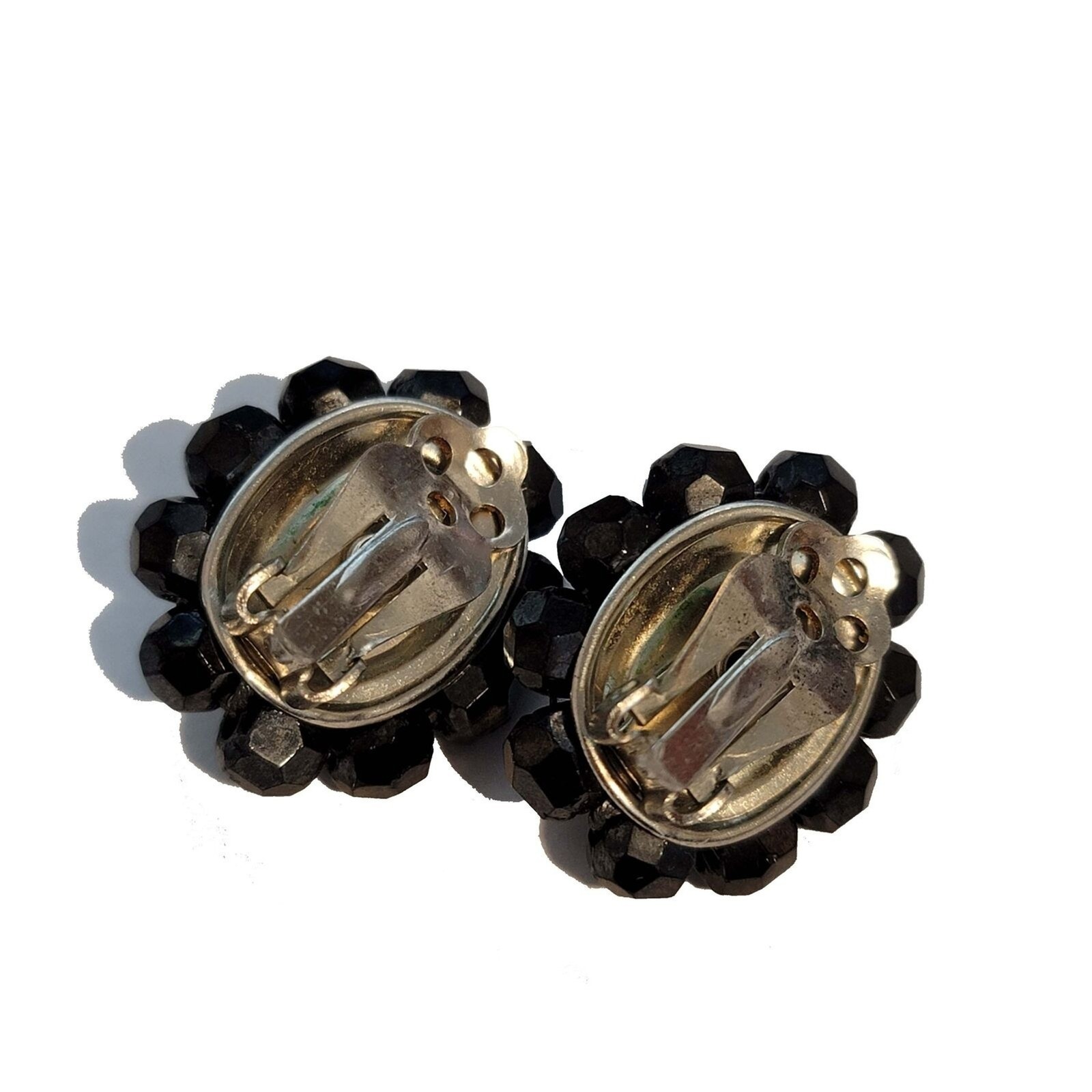 - Vintage Black Faceted Bead Button Clip-On Earrings – Mid-Century Costume Jewelry