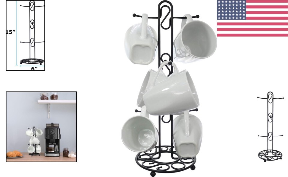 - Vintage Black Farmhouse Coffee Mug Rack – Holds 6 Mugs Stylishly on Counter