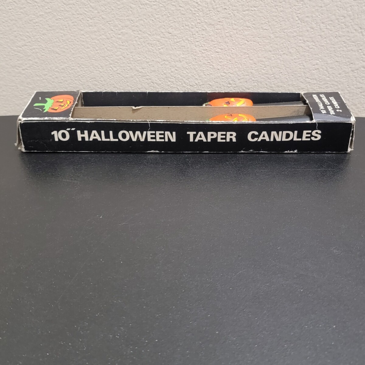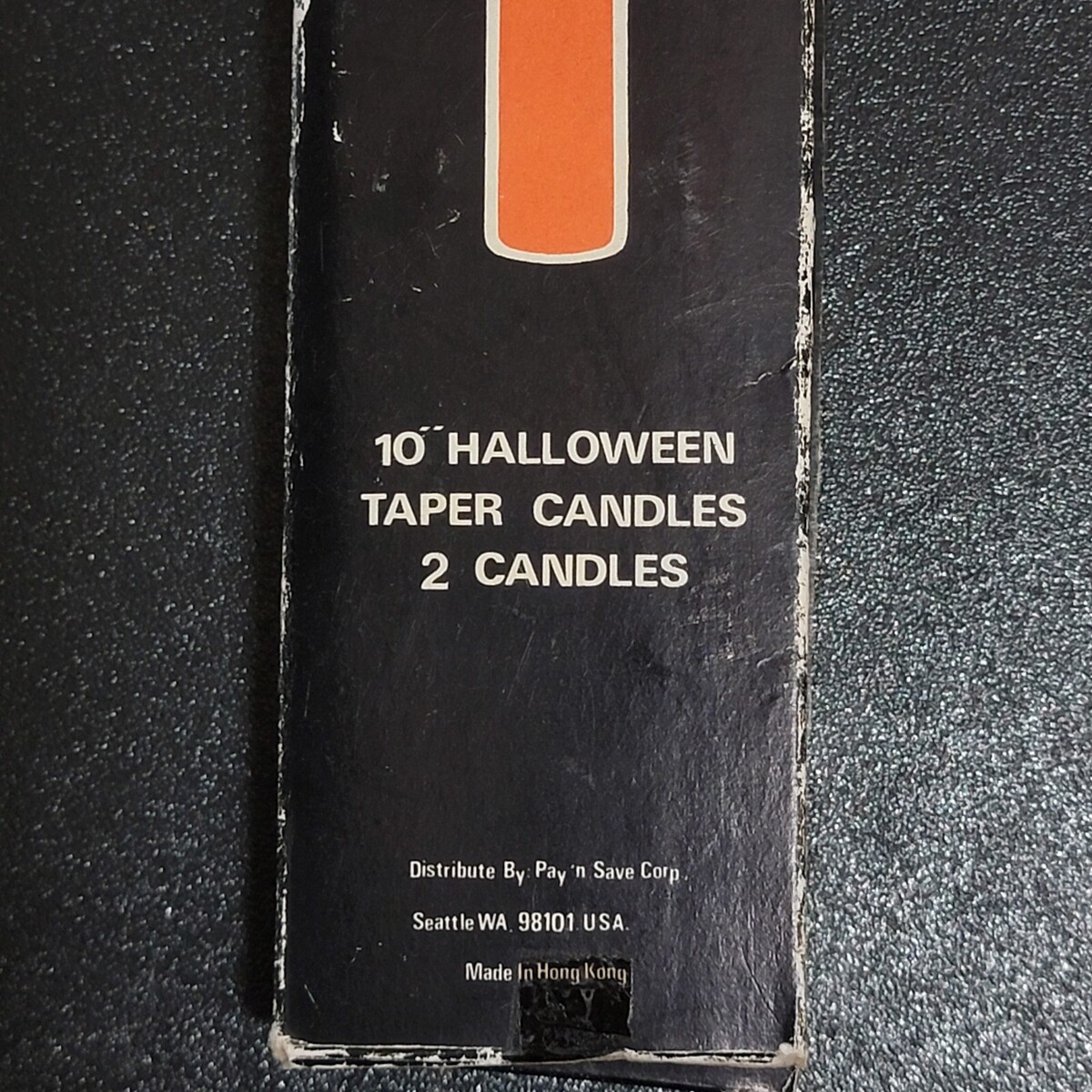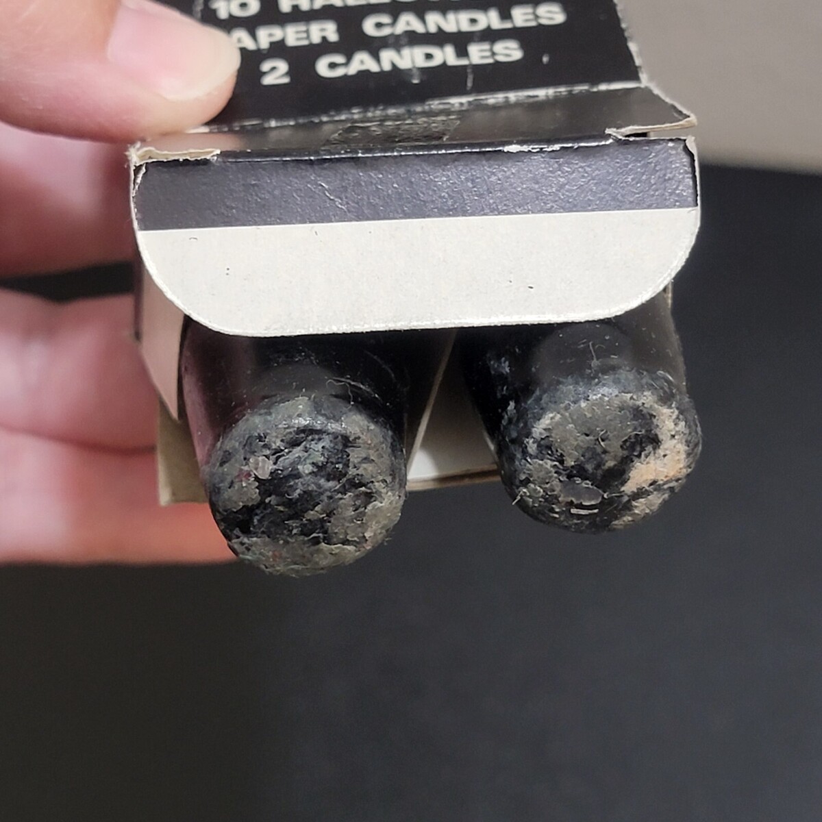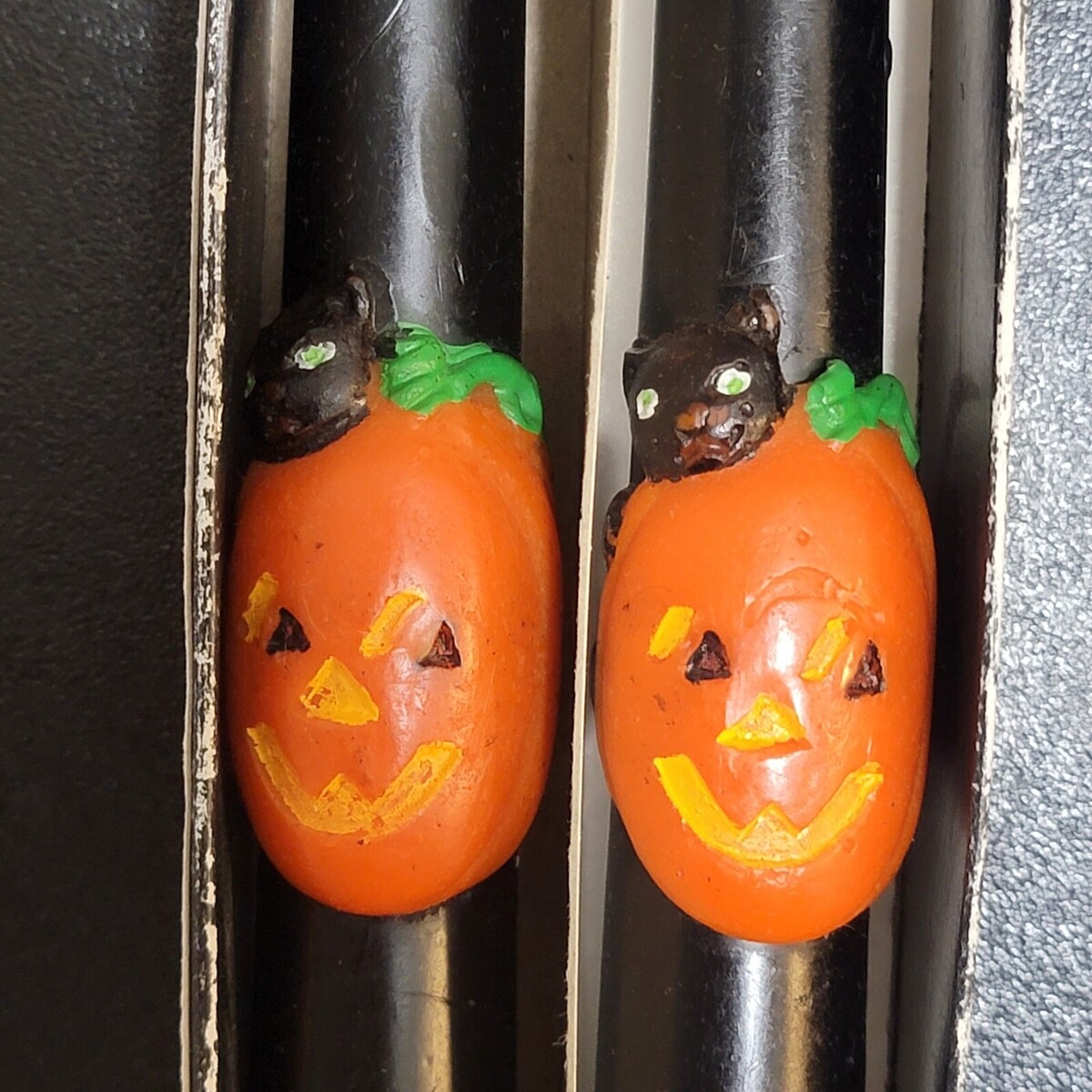 New in Box Vintage Black Halloween Pumpkin Novelty Taper Candles Spooky Fall Decoration.