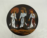 Vintage Black Lacquer Plate Asian women with hats and umbrella
