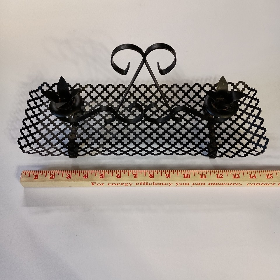 Vintage Black Metal Mesh Candlestick Holder Centerpiece Mid Century Gothic Retro