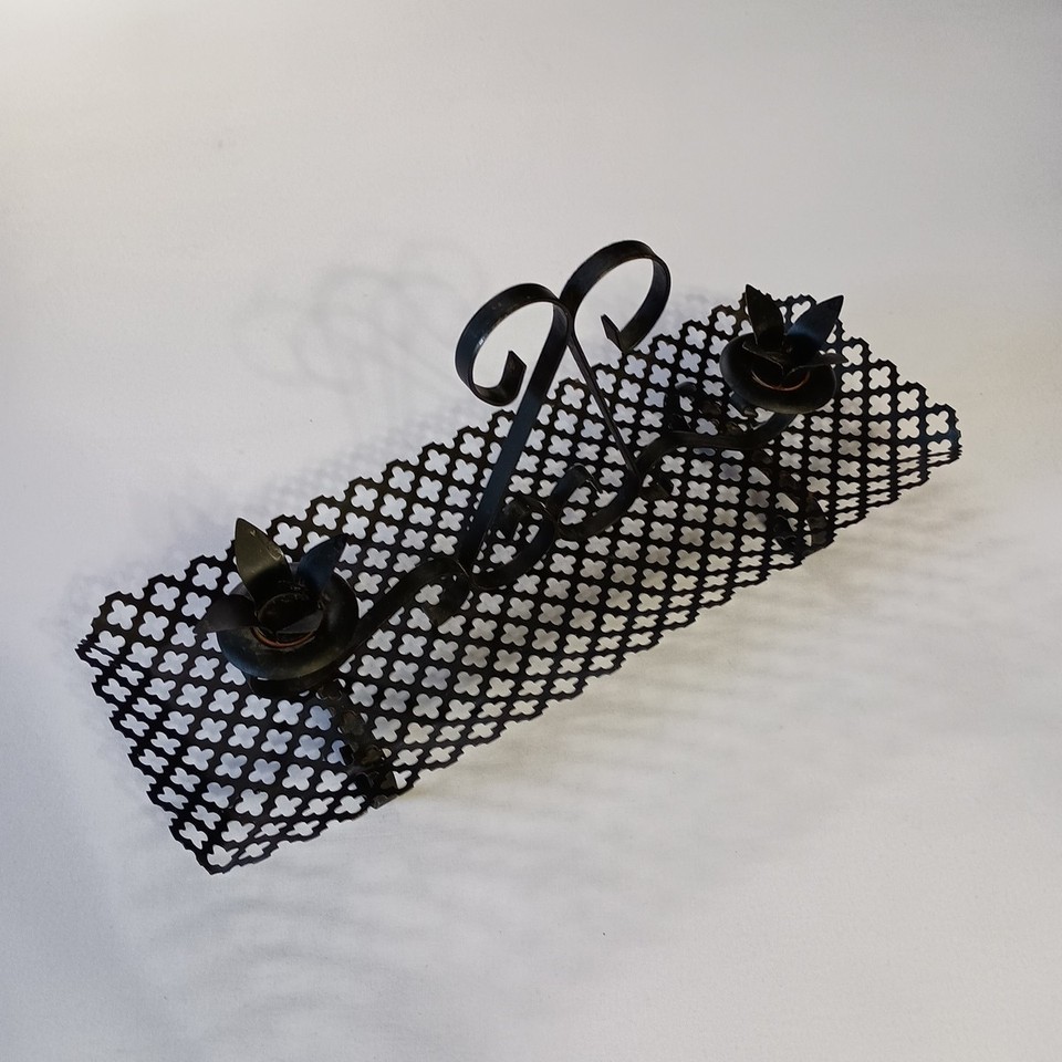 - Vintage Black Metal Mesh Candlestick Holder Centerpiece Mid Century Gothic Retro
