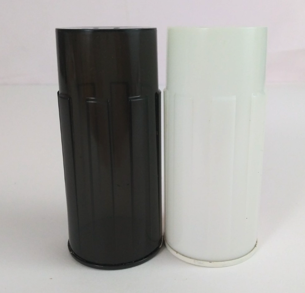 This is for a Vintage Black White Restaurant Style Plastic Salt Pepper Shakers.