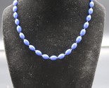 - Vintage Blue Bead Choker Princess Necklace Oval Single Strand Jewelry Plastic