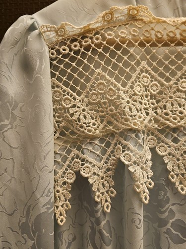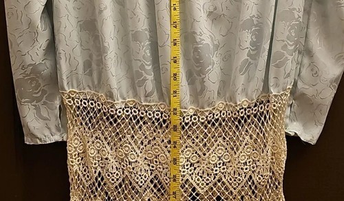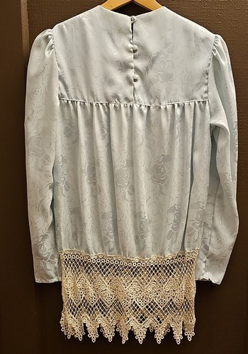 Vintage Blue Jacquard Satin Lace Victorian Drop Waist Tunic Long Romantic Top