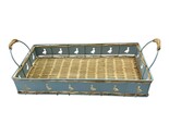 - Vintage Blue Metal & Wicker Tray – Duck Cutout Handles – 1980s