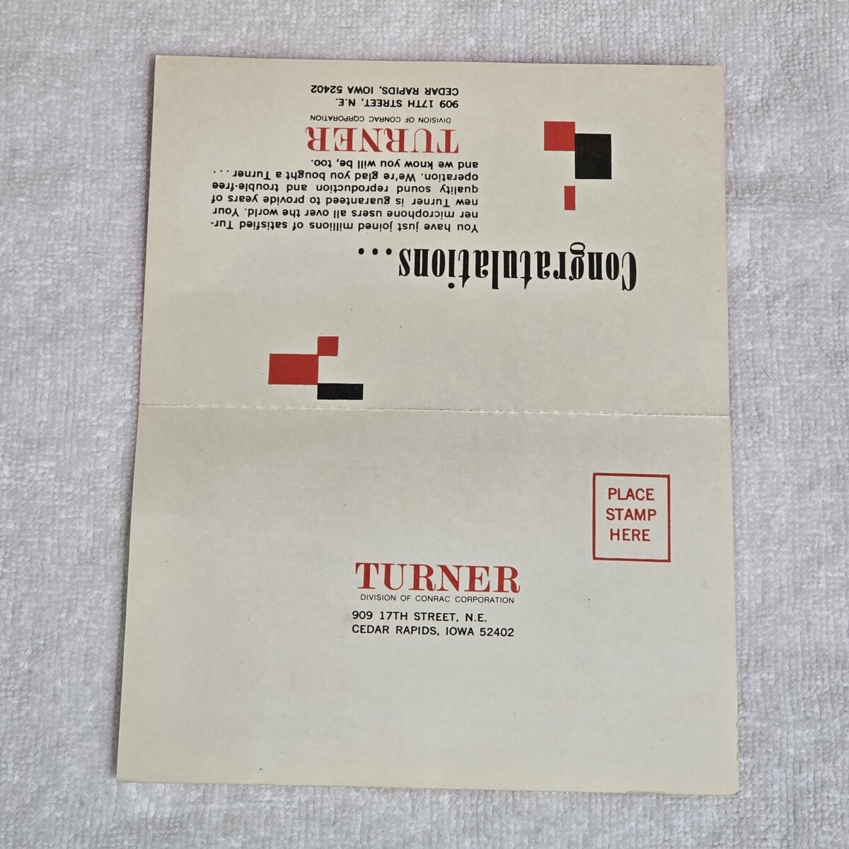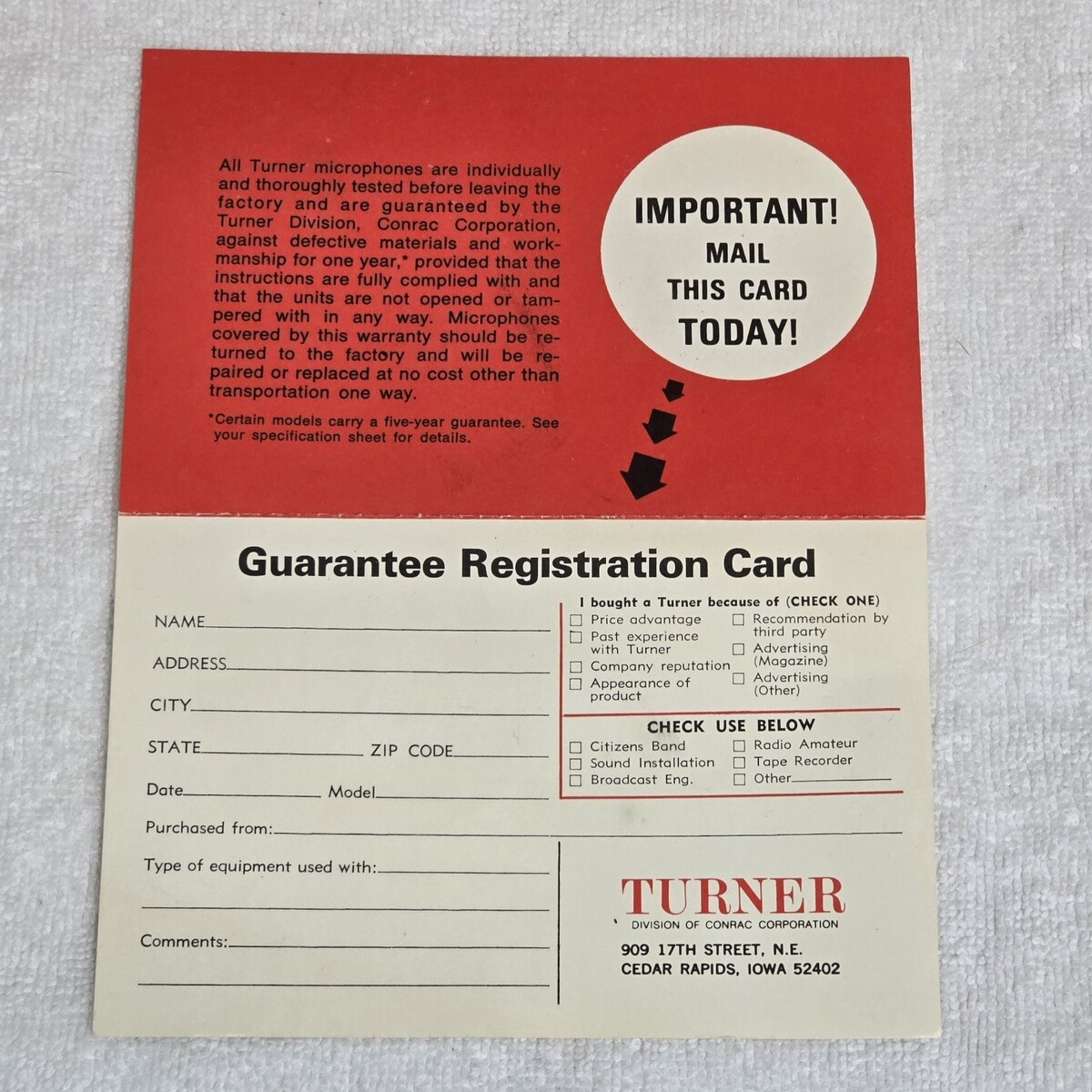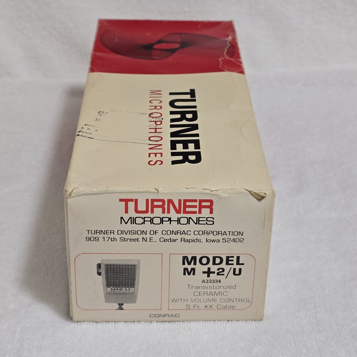 This Turner M +2/U hand microphone is in its original box and includes the warranty registration card.