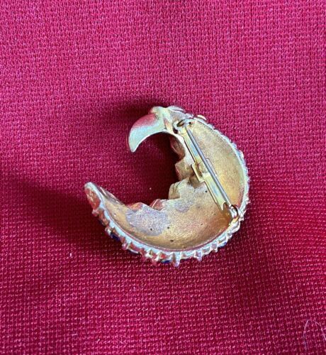 Crafted from metal and rhinestones, this brooch has a simulated main stone creation and an unknown metal purity. The setting style is as seen, and the brooch is an original piece. Whether you're a collector or simply looking for a unique addition to your jewelry collection, this vintage brooch is sure to impress.
