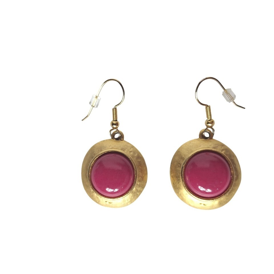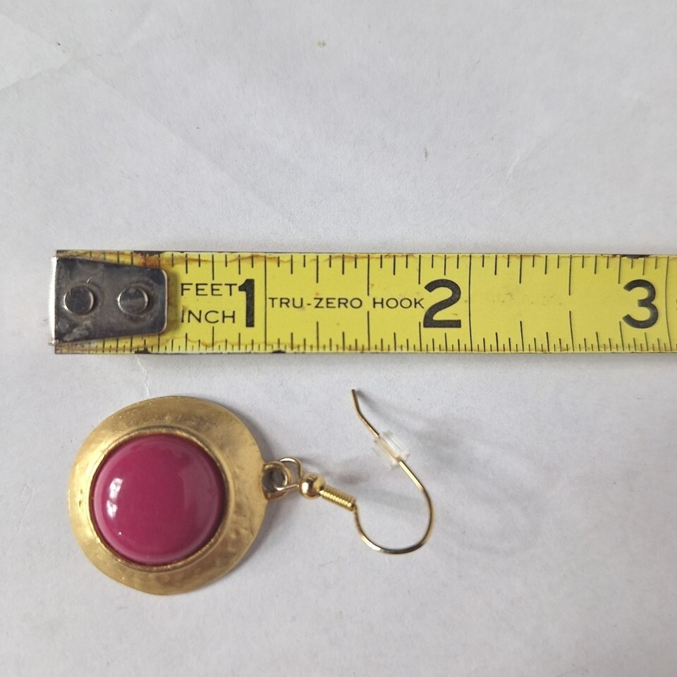 - Vintage Bohemian Pink Cabochon Dangle Earrings Gold Tone Statement Jewelry