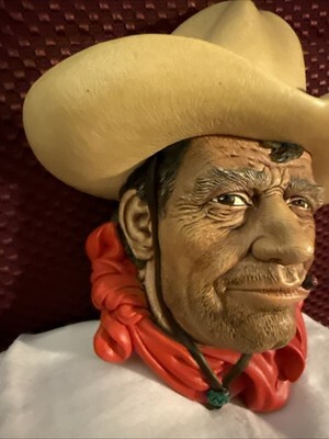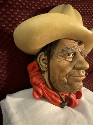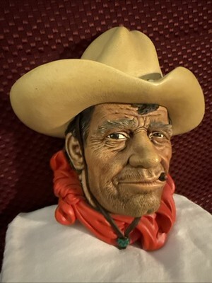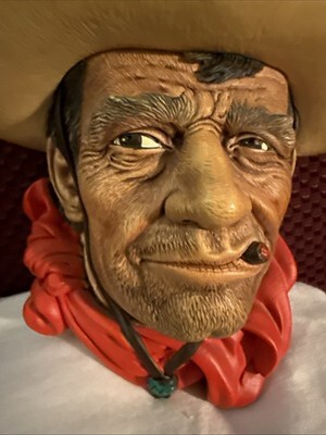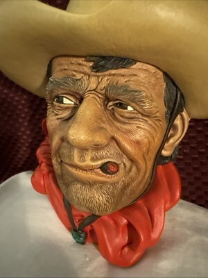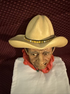 - Vintage Bosson RAWHIDE COWBOY Head Bust 1967 Hand Painted England Chalkware