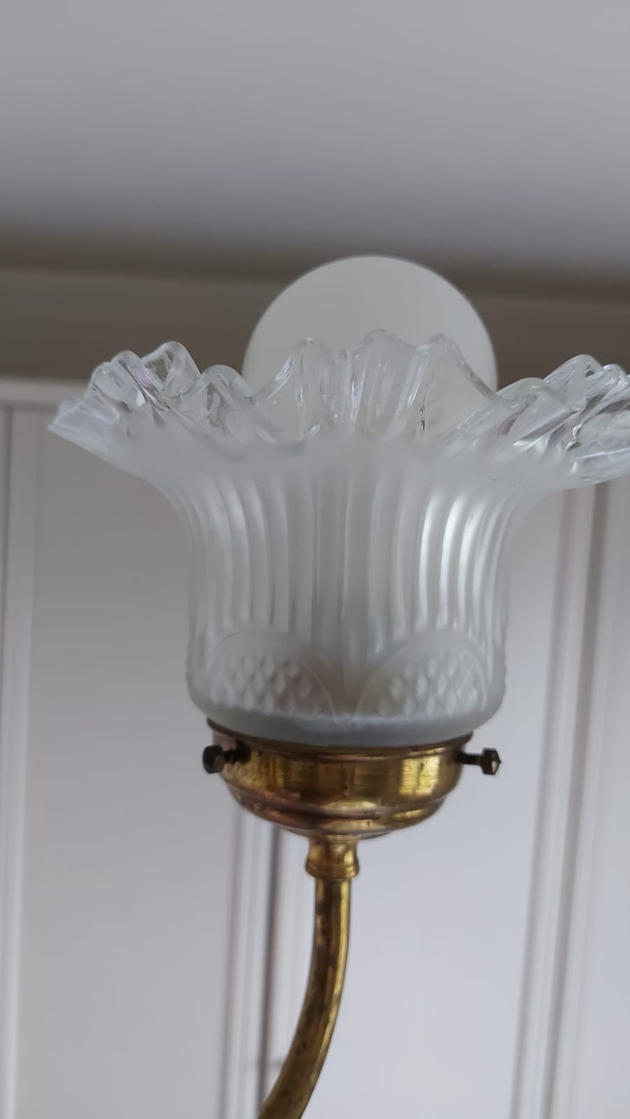 Its gently curved brass arms and detailed central column make it a perfect statement piece for vintage-inspired interiors or antique lighting collections.