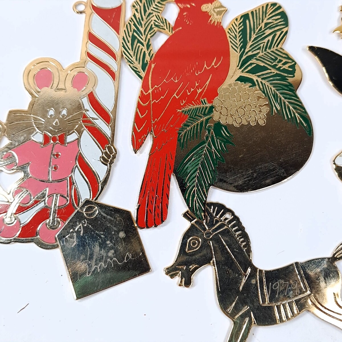 Vintage Brass Ornament Set 25 Gloria Duchin Lillikins Lillian Vernon gold metal