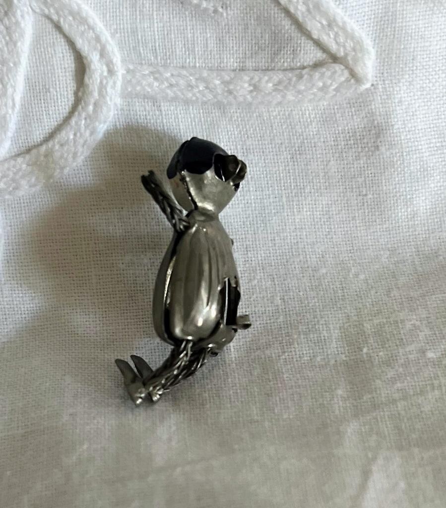 - Vintage Brooch Child w Articulating Legs Silvertone Body 1.5" Tall
