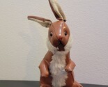 Vintage Brown Vinyl 10" Rabbit Faux Fur Japan 1950s Plush Stuffed Toy - Missing Tag.