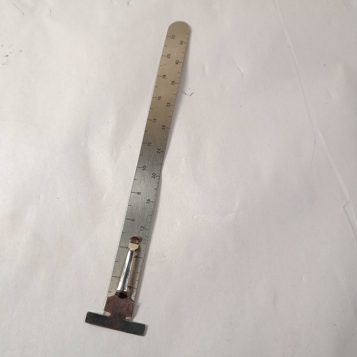 Some minor marks, but overall good condition. Thin metal ruler with slide. See pics.