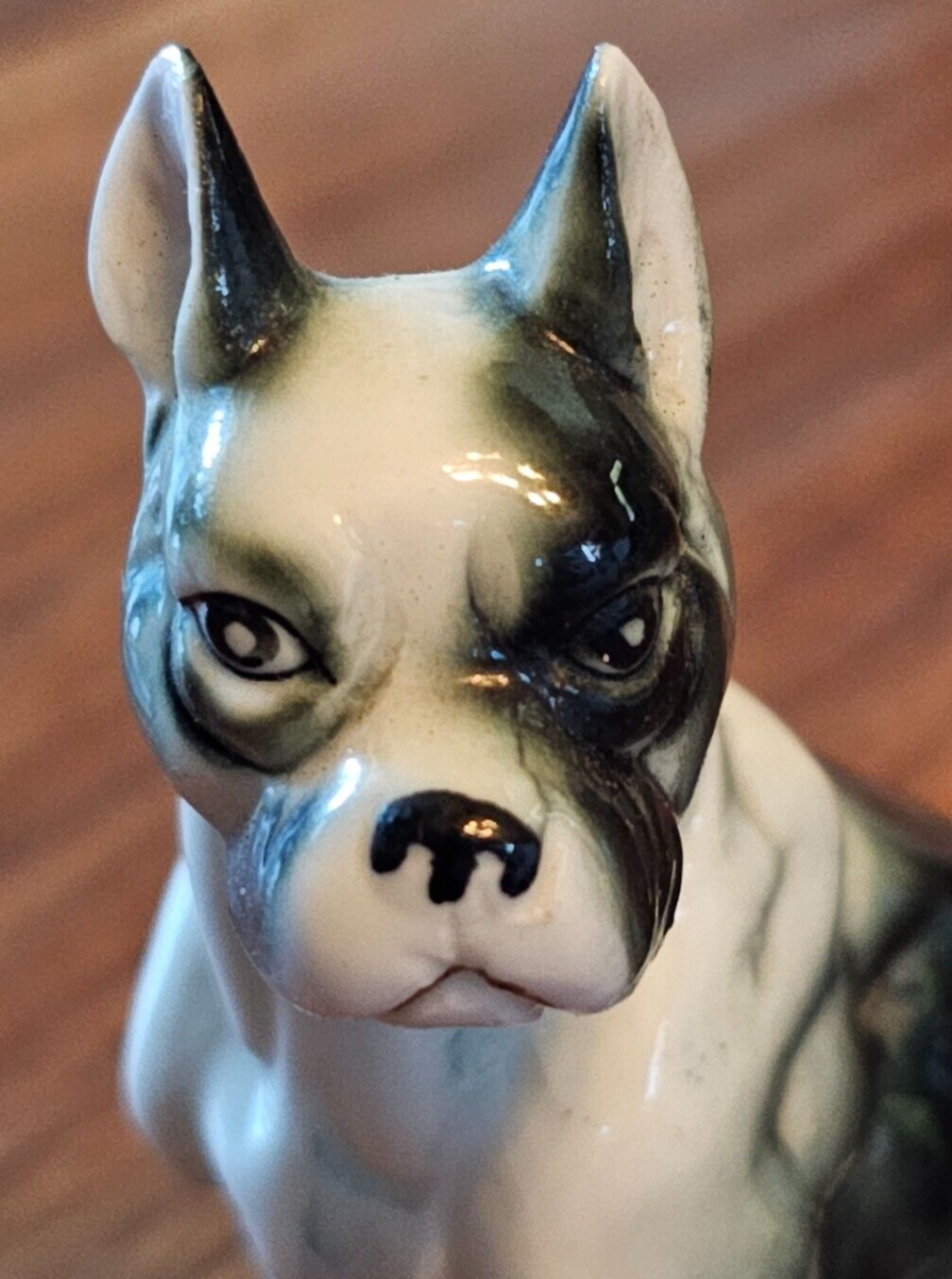 Vintage Bulldog Puppy or Frenchie Figurine Black and White GLS