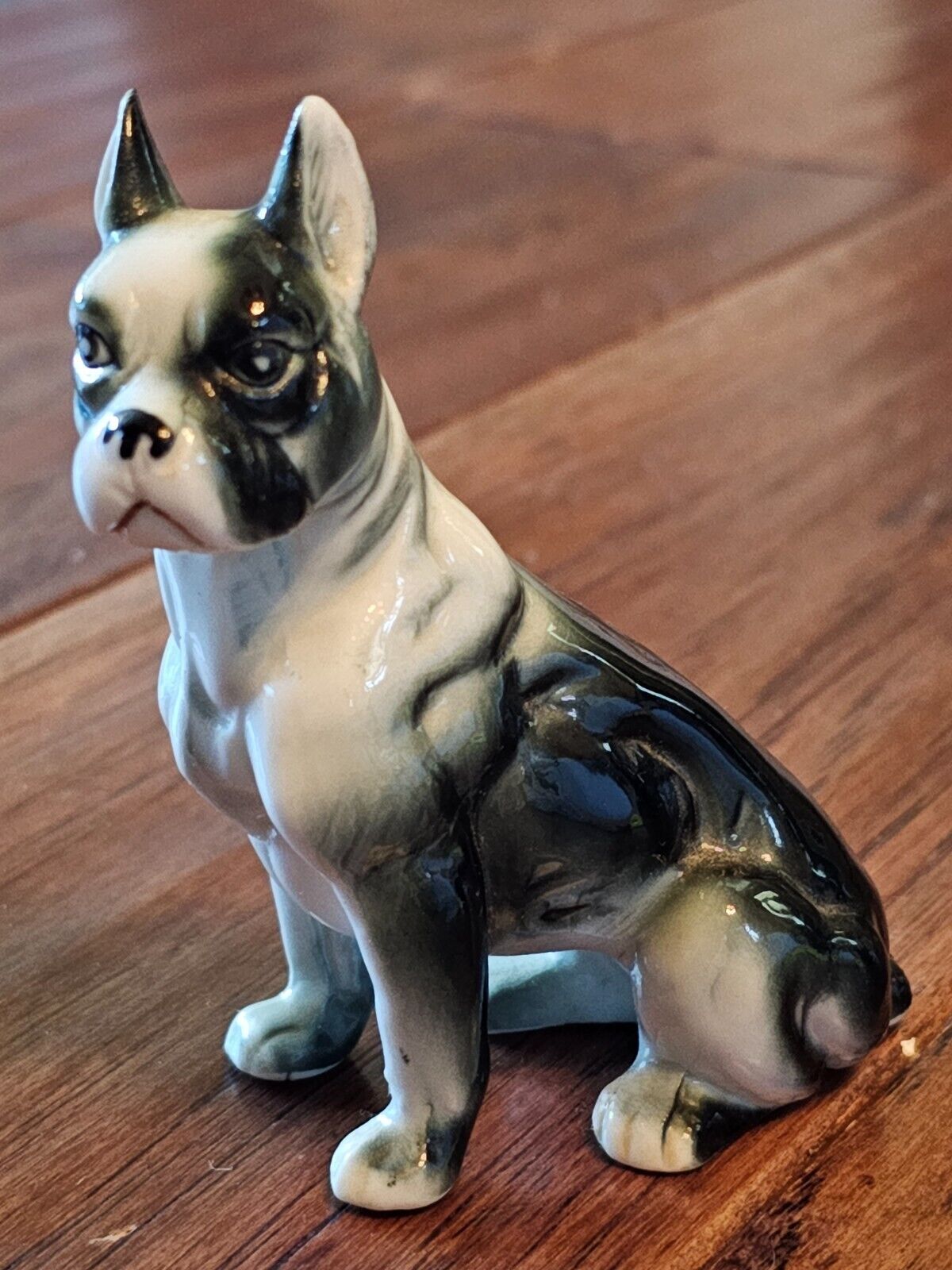 - Vintage Bulldog Puppy or Frenchie Figurine Black and White