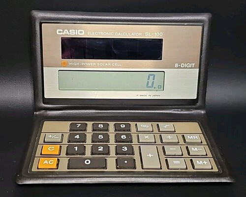 - Vintage CASIO SL-100 8-Digit Electronic High Power Solar Cell Calculator in Case