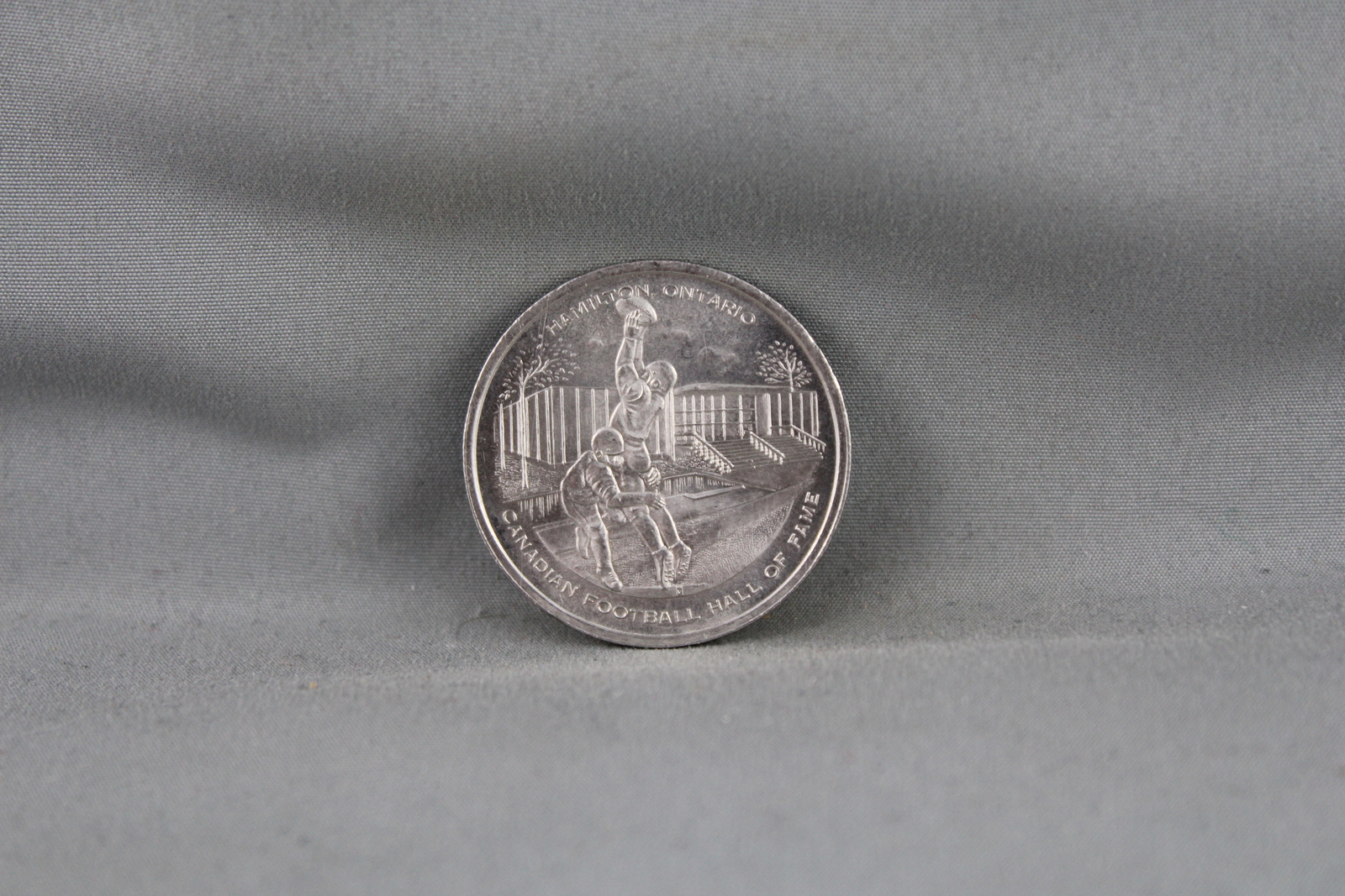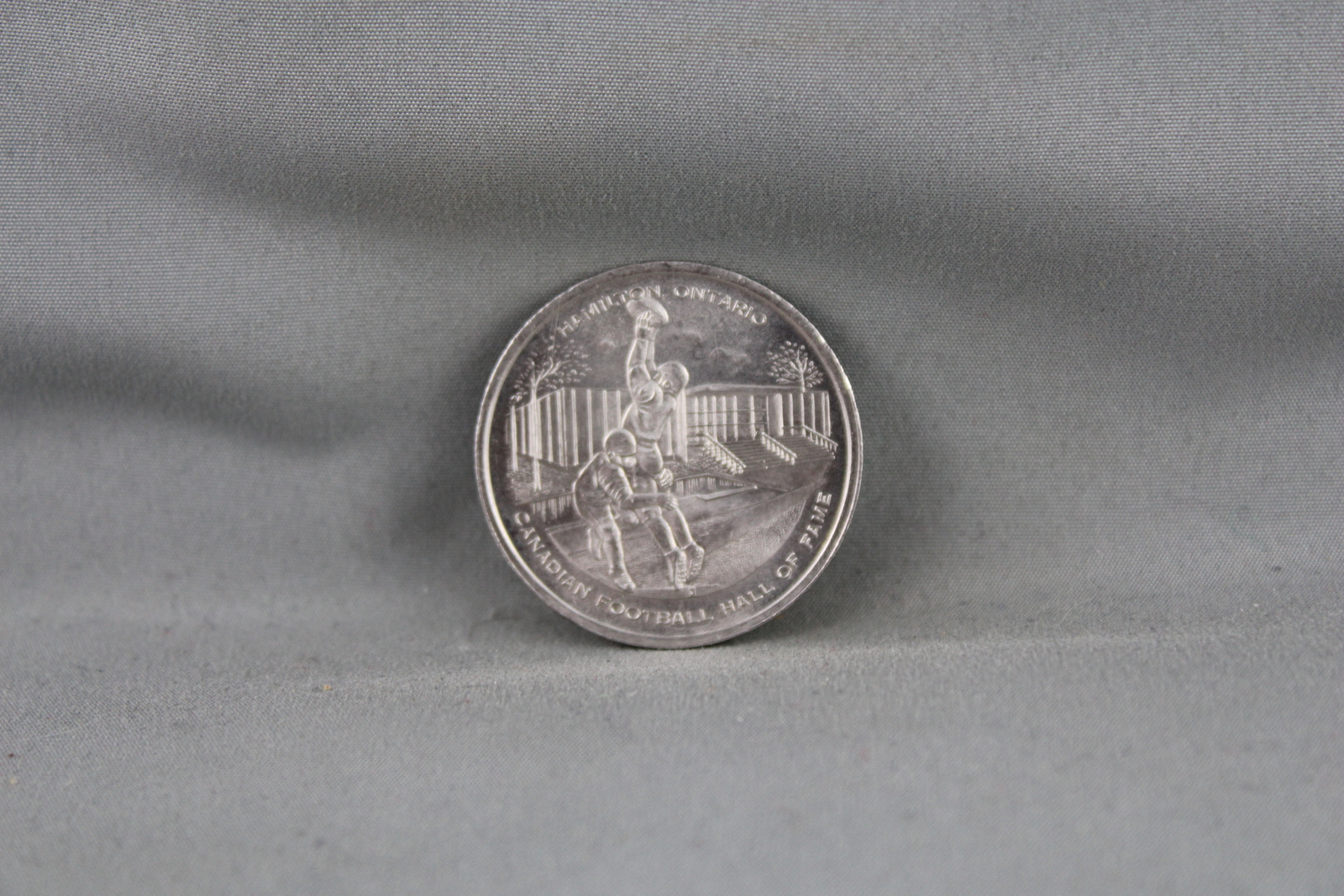 Up for sale is a vintage CFL coin. It is a silver dollar for the 1972 Grey Cup. One side of the coin has a graphic of Grey Cup stamped in, and the other side of the coin has a graphic of football players stamped in. What a great addition to any colleciton.