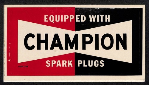 - Vintage CHAMPION Spark Plug adhesive vinyl STICKER bumper toolbox 7.5" x 4" 3-RB