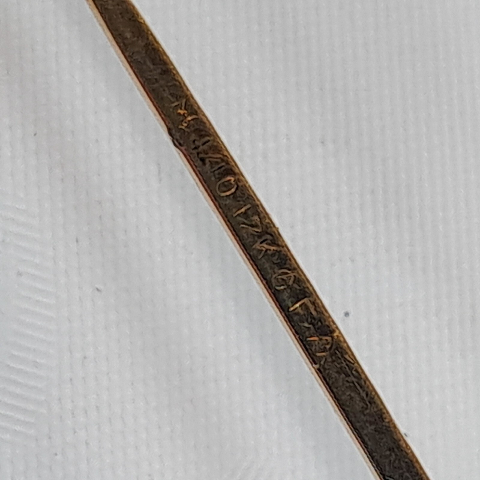 Gold filled with Gold tone frame. Wear/patina/rust/scratches as shown. Fair condition. Needs to be reshaped and tightened. Case has staining/marks. See all pics.