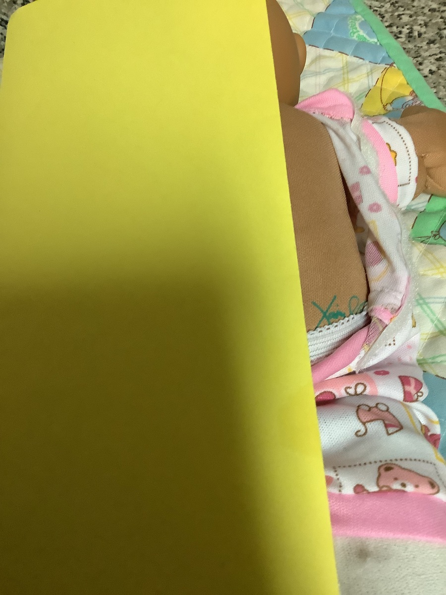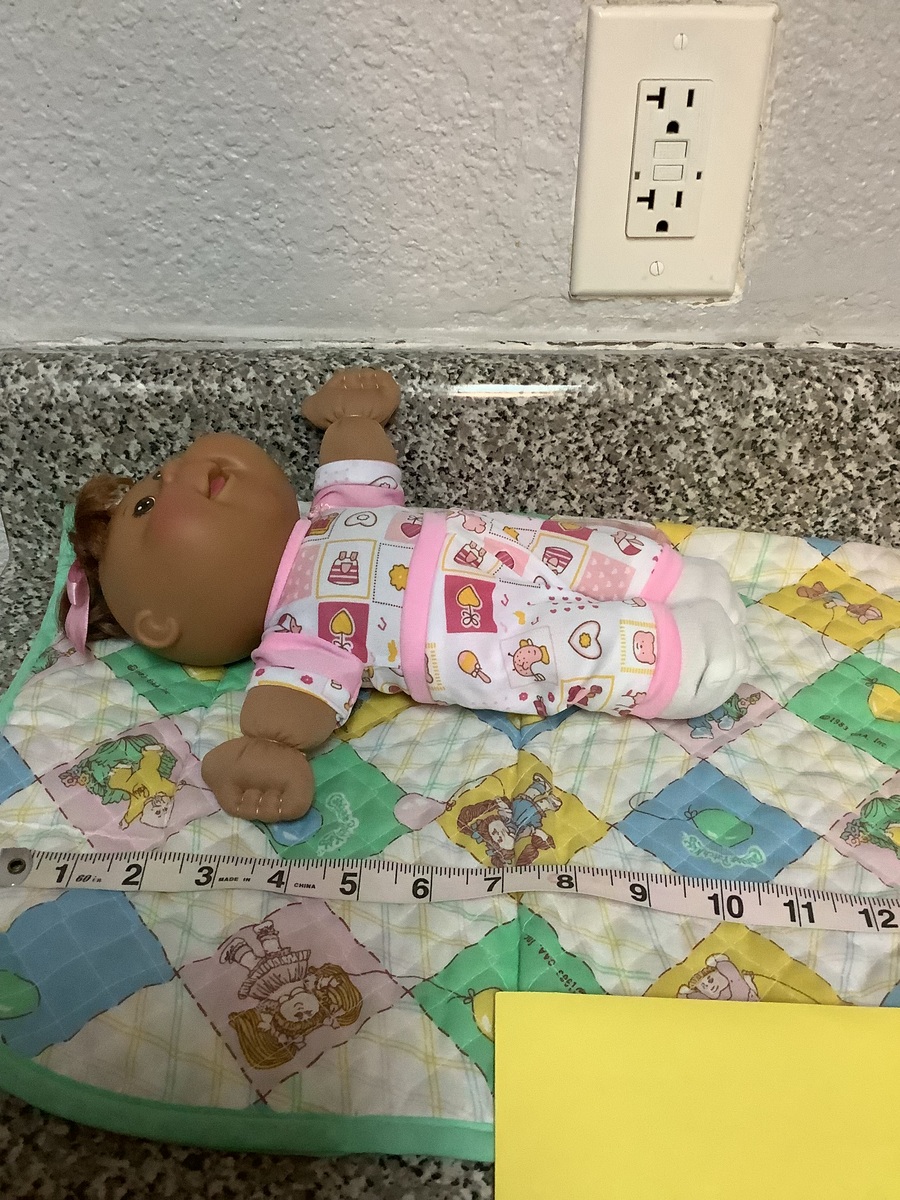 She comes with a custom made adoption papers just for fun….I call her Mandi Dominique but please feel free to give her the name of your choice. She also comes with a little gift.