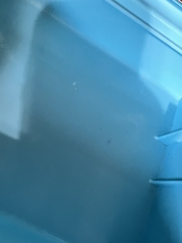 A few spots on the interior like nail polish or make-up. Could use a good sponge bath.