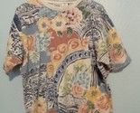 - Vintage Capacity Knits women's L Floral Abstract Blouse top shirt Pink Blue