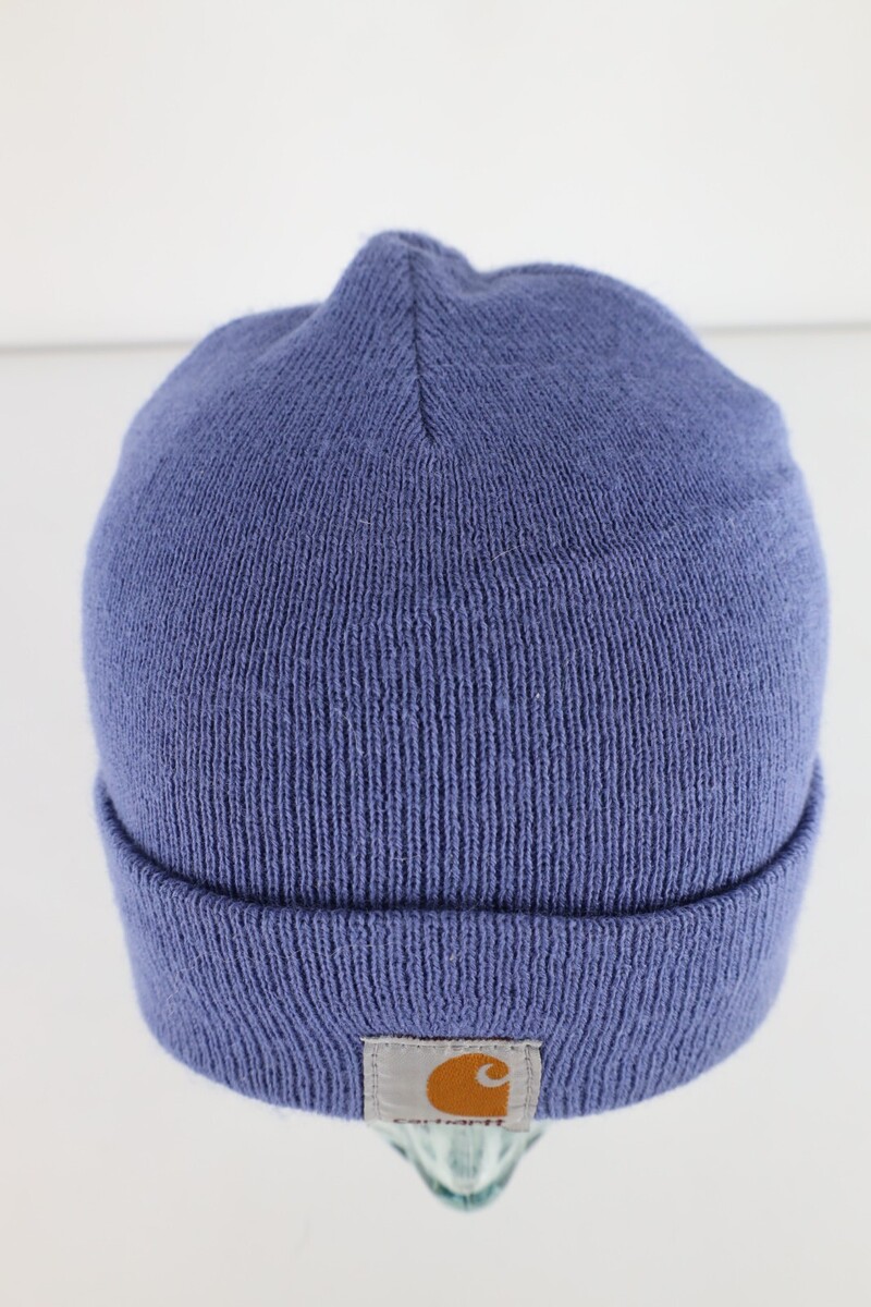 - Vintage Carhartt Spell Out Box Logo Knit Winter Beanie Hat Cap Purple Womens
