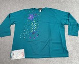 - Vintage Carol Patterson Knits Sweater Womens 3X Plus Teal Embroidered Beaded