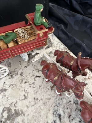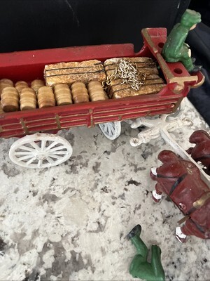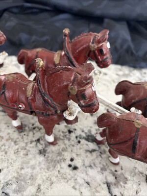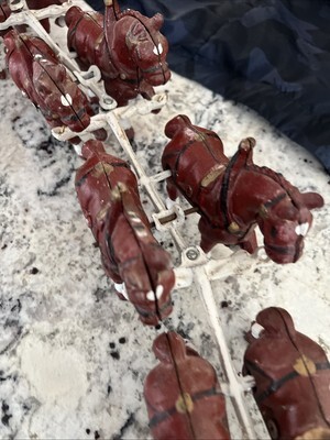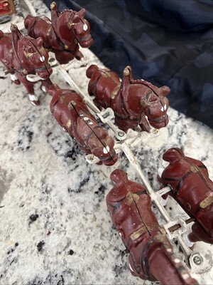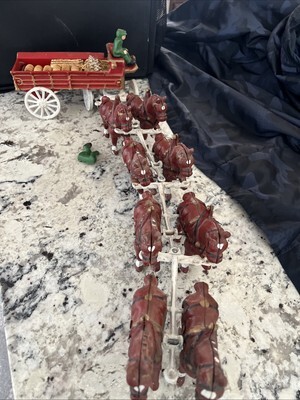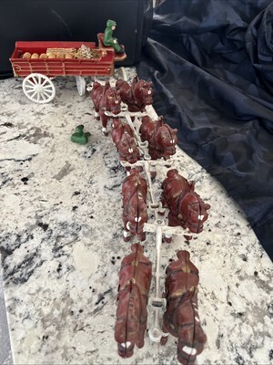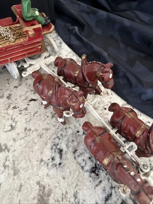 - Vintage Cast Iron Horse Drawn Beer Wagon with Driver and 8 Clydesdales Budweiser