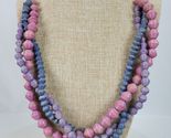 Vintage Casual Career Paper Beaded Necklace 36 Inch Pink Lavender Blue