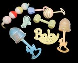 UP FOR SALE: Vintage 1930s-40s-50s Celluloid Hard Plastic Baby Rattle Teether Cherub Heinz Deer Balls Lot of 8