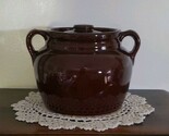 Vintage Ceramic Bean Pot ~ Side Handles ~ Lid ~ Brown Glazed ~ USA ~ 7" x 8.5"