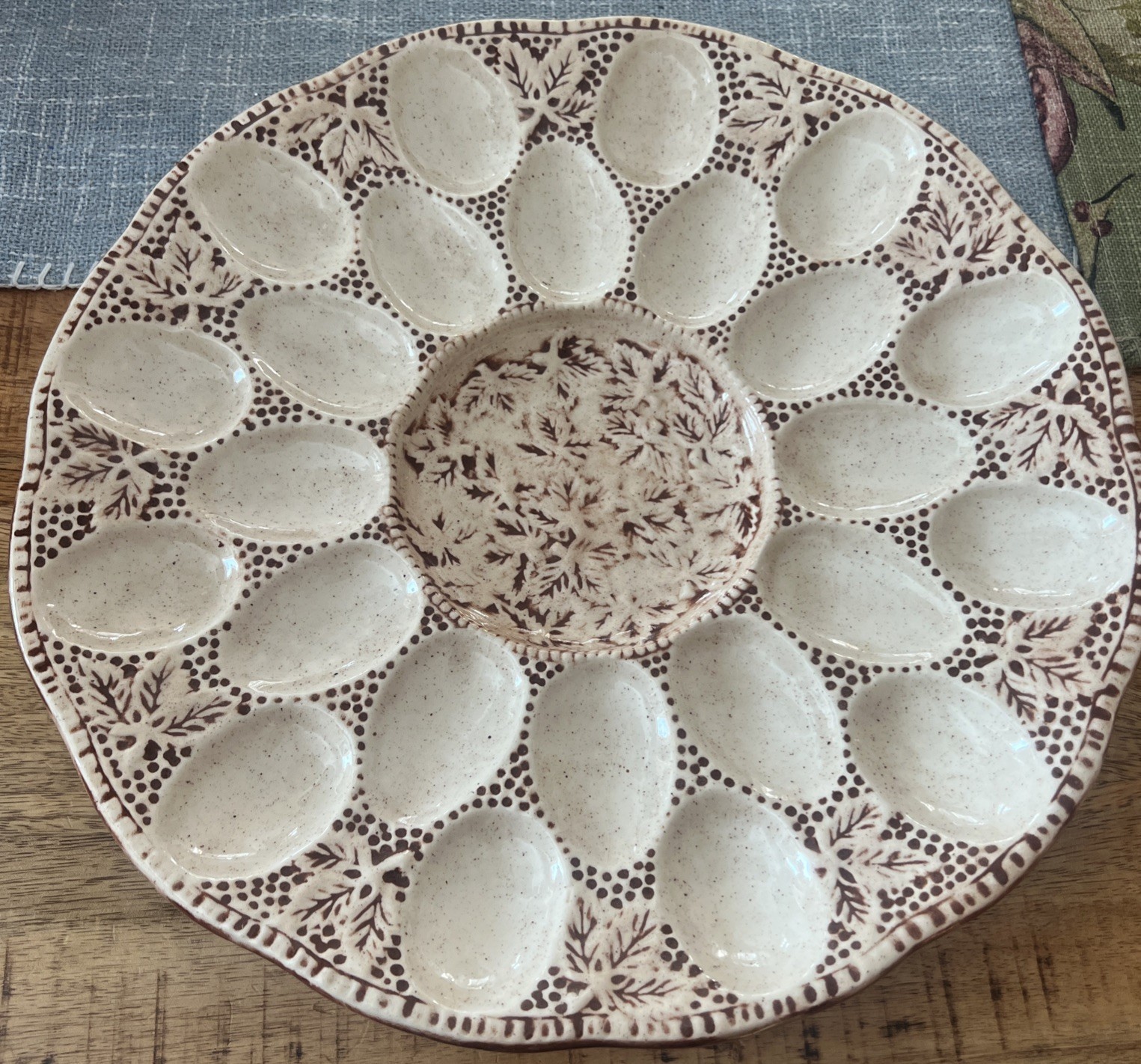 - Vintage Ceramic Deviled Egg Platter Italian Design Leaves Berries 24 Eggs 13” D