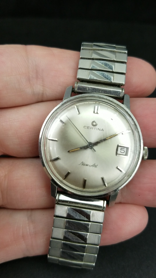 Beautiful Certina New Art men's watch. AUTOMATIC. Black dial with stainless body and band. All original. The indices glow green.