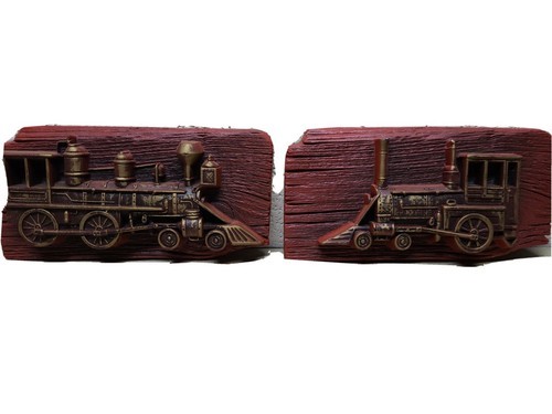 Vintage Chalkware Train Locomotive Decorative Wall Hanging set of 2. 9 x 5". Condition is "Used". Shipped with USPS Priority Mail.