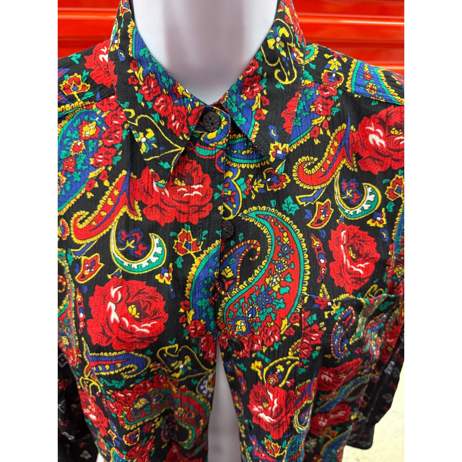 - Vintage Chaus Petite women Size 4 100% Rayon Paisley & Rose Crinkle Blouse
