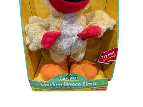 This is a brand new Fisher-Price sesame Street Chicken dance Elmo doll. As you can see it is new in the package but because of the age the package does have some damage. I have tried to get close up pictures of the damage. This item is untested since I would have to take him out of the box to try him. This item comes as is.