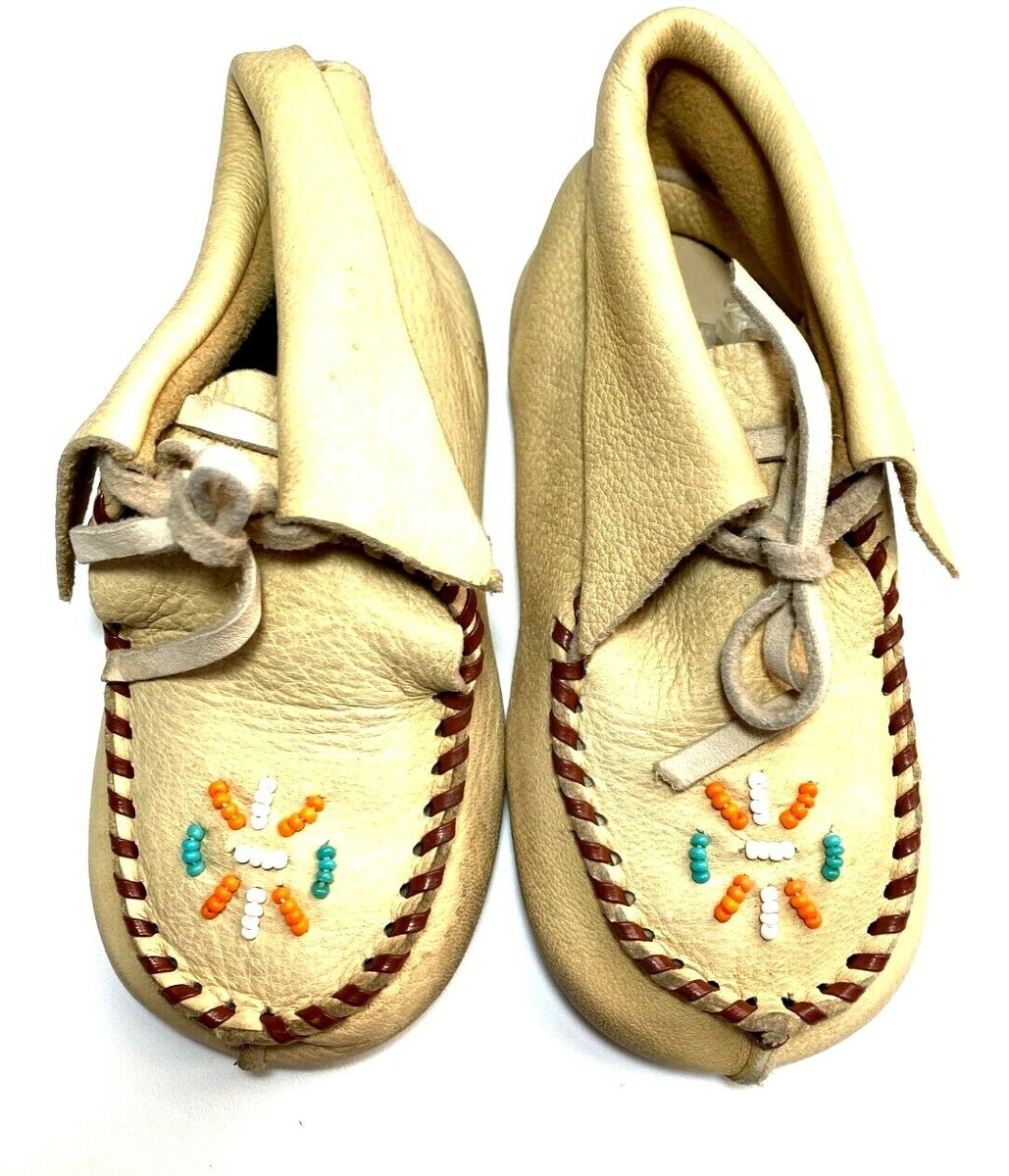 - Vintage Child's Beaded Deerskin Moccasins Southwestern Unworn
