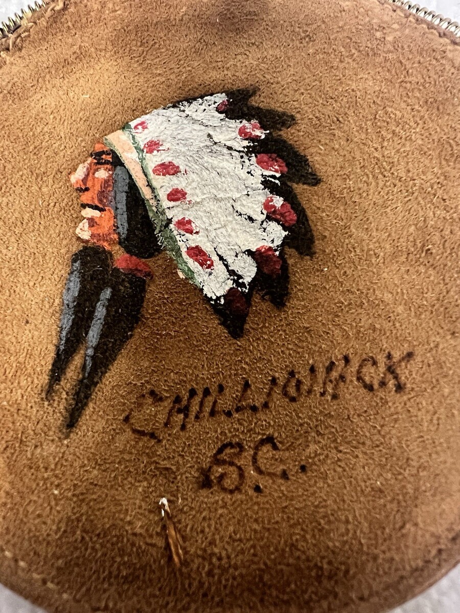- Vintage Chilliwack BC Hand Painted Leather Coin Purse Indian Headdress 3.5 inch