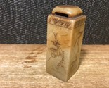 - Vintage Chinese Art Carved Soapstone Seal, Stamp, Chop- with Mountain Scenery