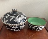- Vintage Chinese Cloisonne Floral Enamel Bowls Black White Lid Lot Of 2 Marked