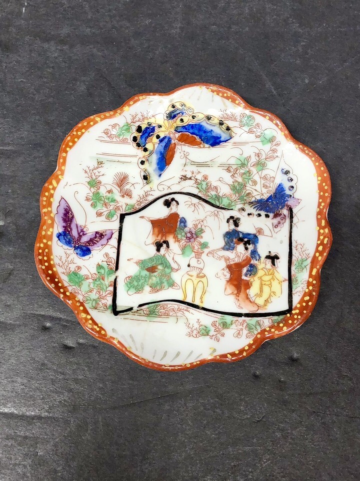 - Vintage Chinese Geisha Girls Butterflies Trinket Tray Dish Plate Hand Painted
