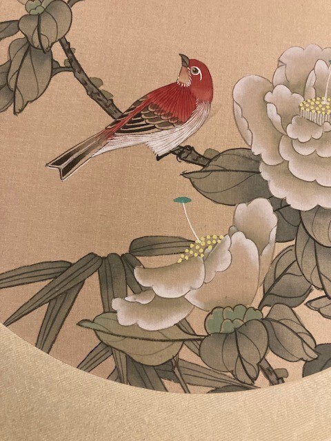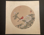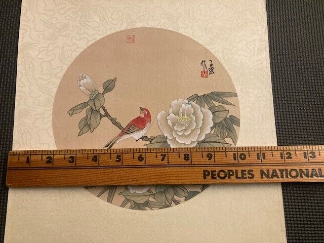 - Vintage Chinese Silk Painting Bird And Flowers mounted on brocade Beautiful 12"